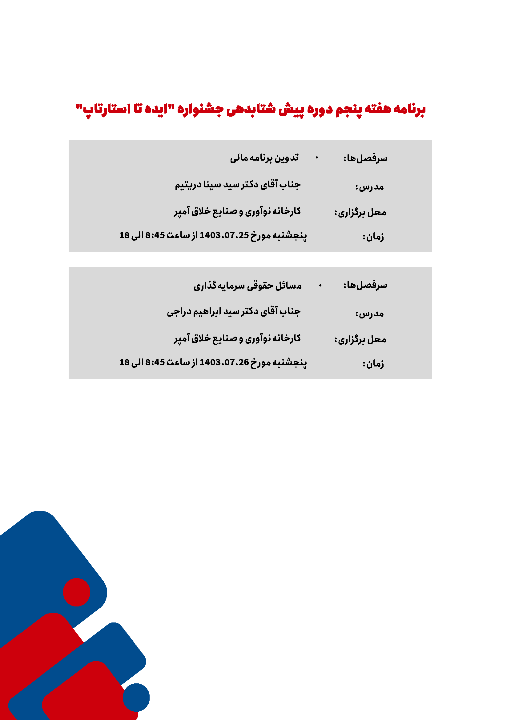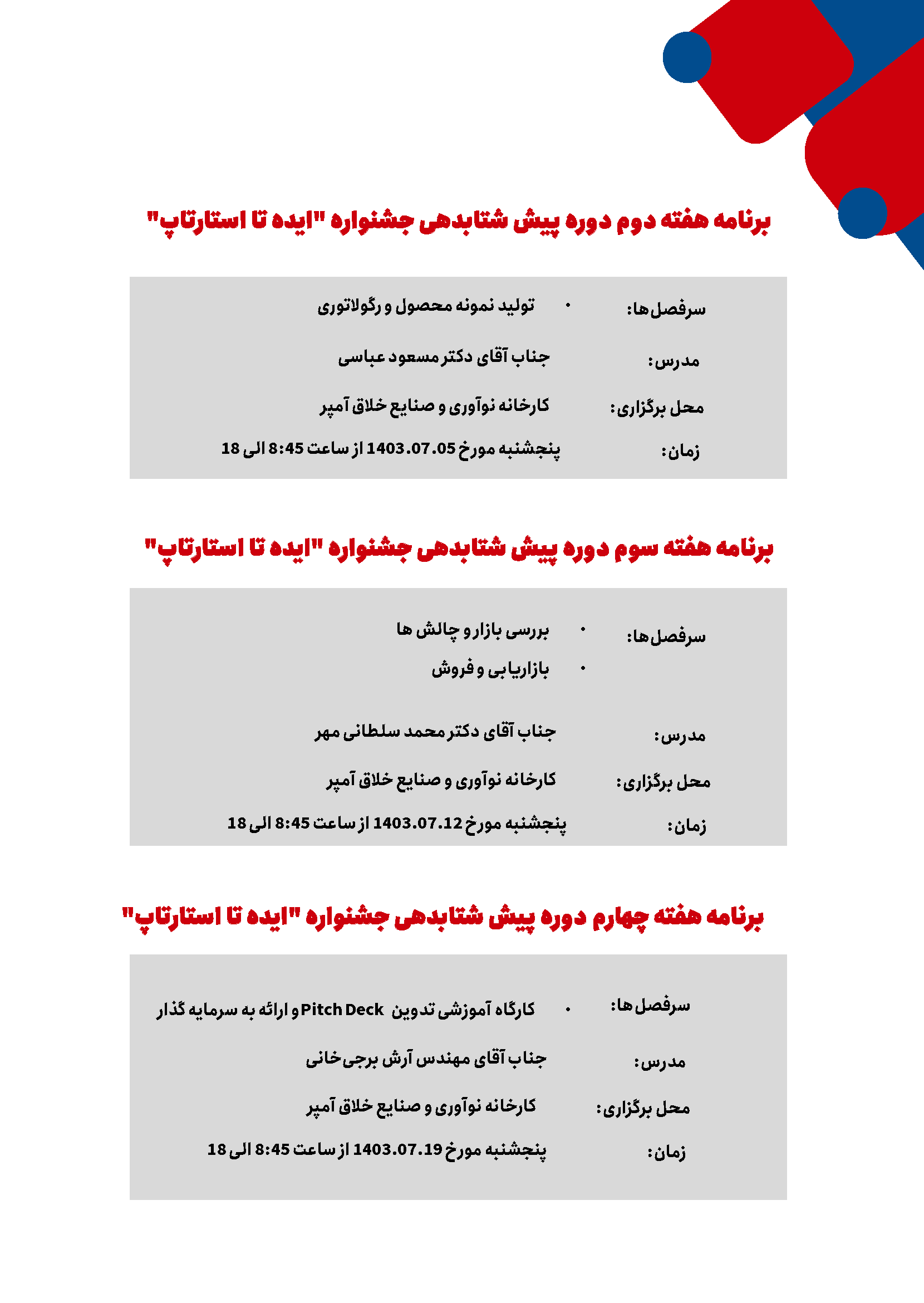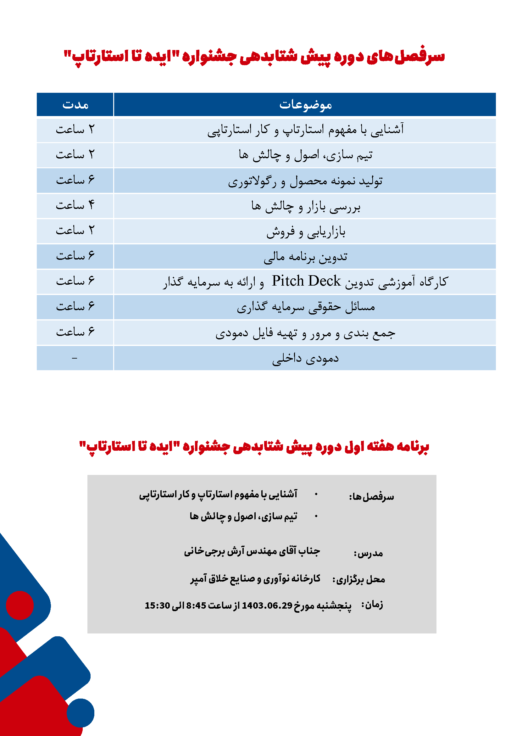 دوره پیش شتابدهی تیمهای منتخب جشنواره "ایده تا استارتاپ"